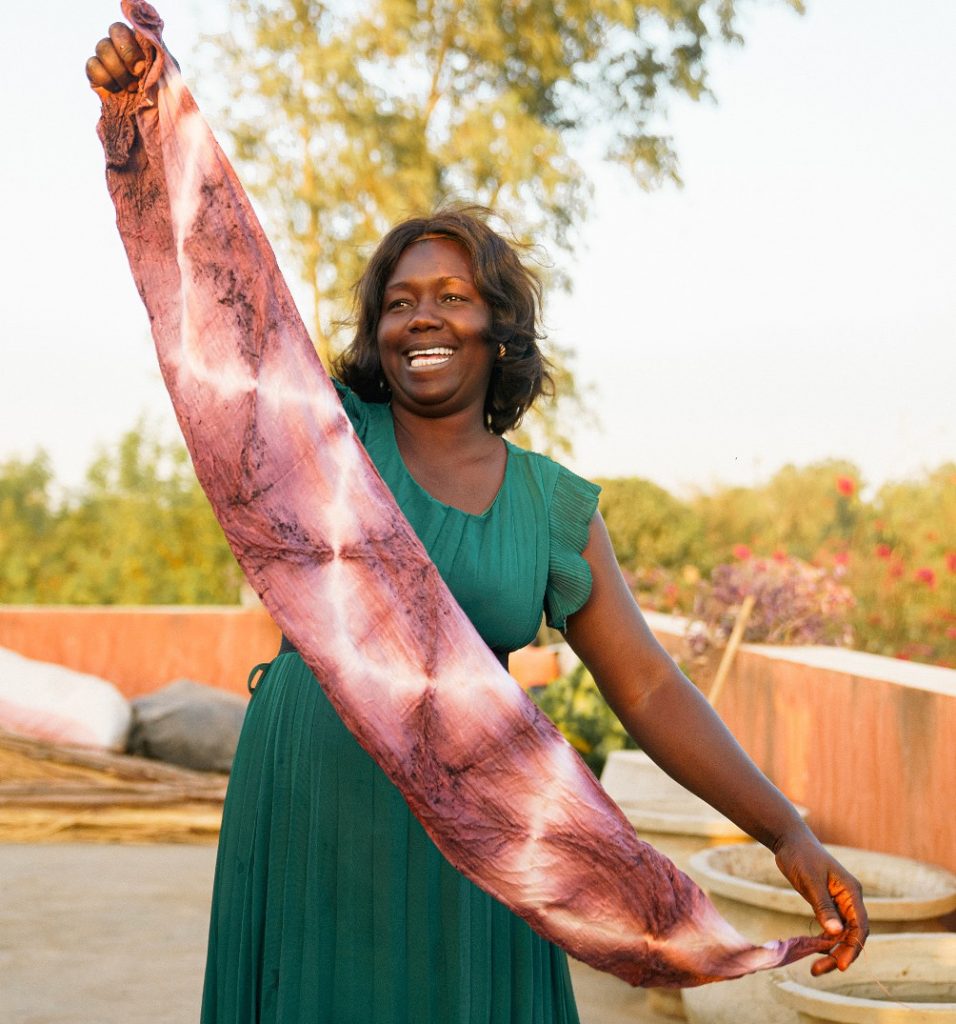 Férue de textile africain, elle mène des recherches sur les matières et les techniques de teinture végétale, implantant des cuves à la Somone où elle accompagne des femmes de différentes localités dans la réalisation de teintures à partir de feuilles, d’écorces et de plantes locales.